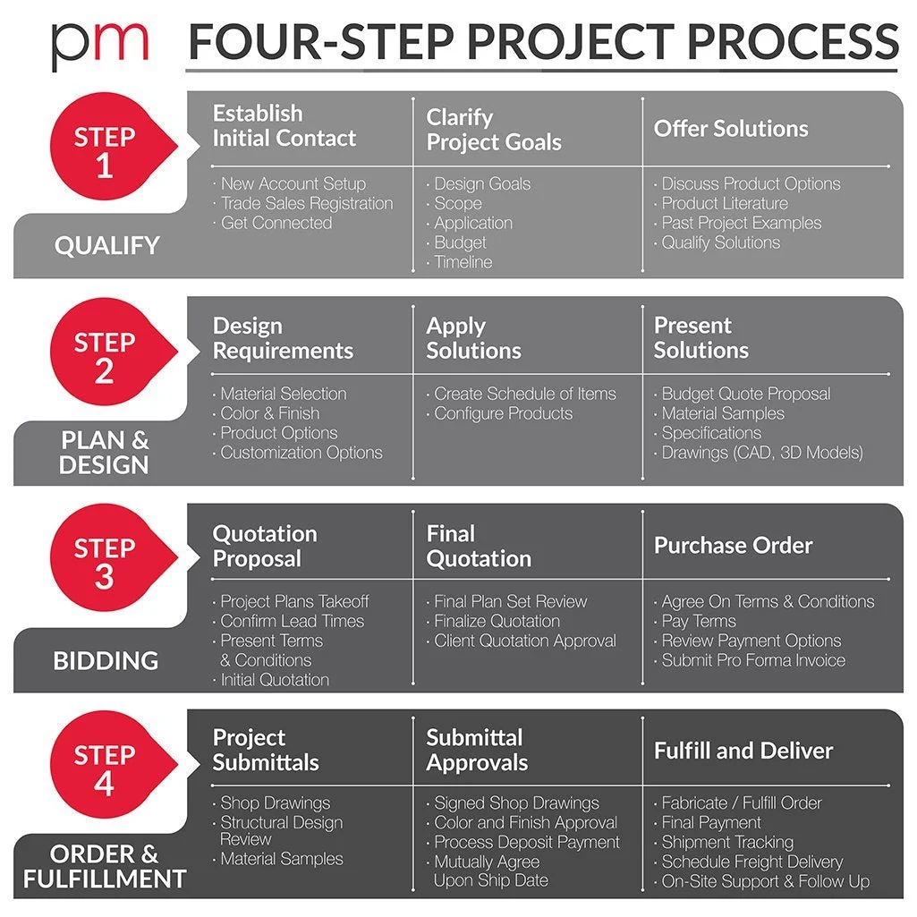 With the right vendor’s expertise, a successful outcome quickly comes into focus. That’s why PureModern adheres to a collaborative, hands-on approach, driven by a Four-Step Project Process.
