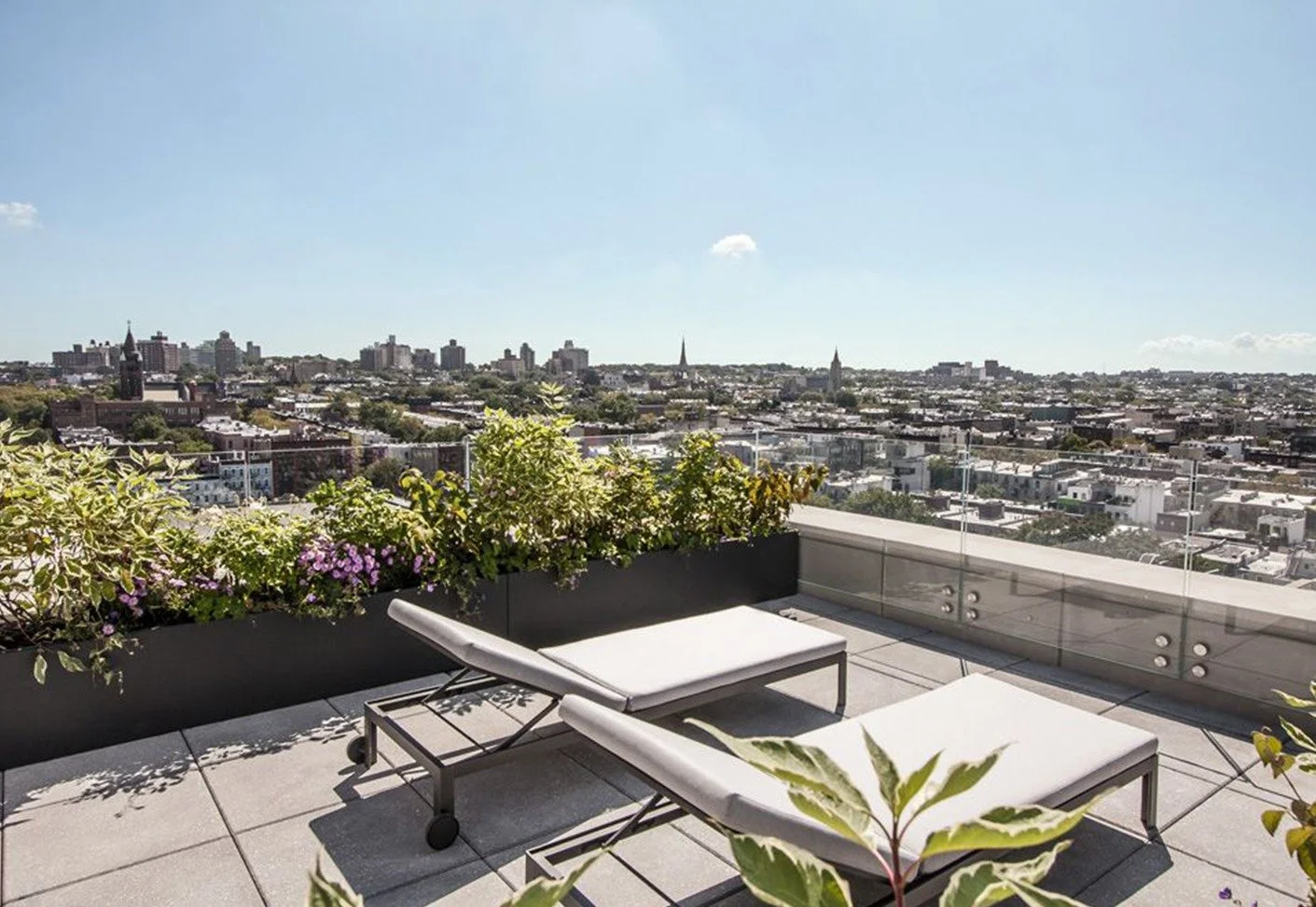 Roosevelt - Jackson Heights, NY: G&M works, a landscape contractor, installed PureModern’s marine-grade powder-coated aluminum planters throughout the landscaped rooftop gardens on the 3rd and 14th floors. Complete with fabricated cutouts to fit pathway lights, the planters were further customized into specific shapes. The custom shaping enables the planters to seamlessly soften and tie together the multi-purpose space that includes tables, lounging areas, and even an outdoor kitchen with grills for Roosevelt Parc residents to use.