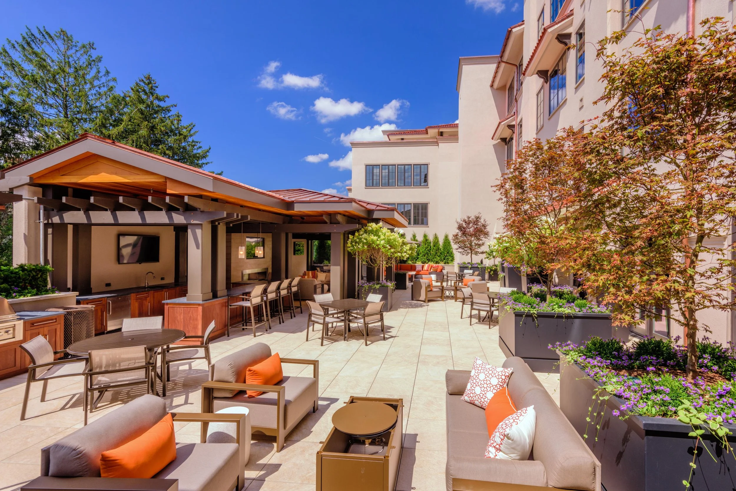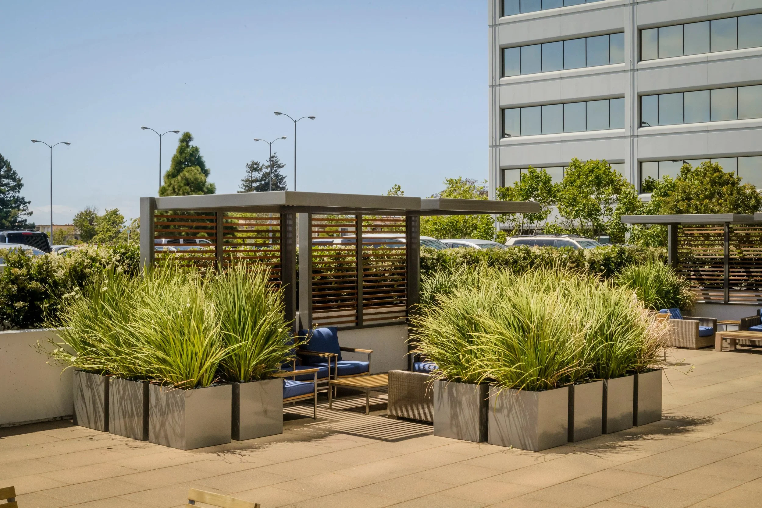 See how aluminum planters transformed the roof deck at The Towers at Emeryville into a dynamic outdoor lounge area. Aluminum planter boxes, powder-coated in Quartz Grey, were strategically placed to define spaces and enhance the design.
