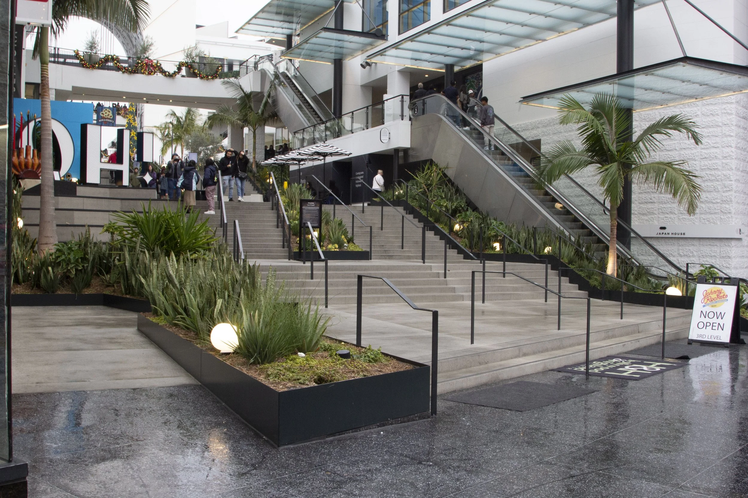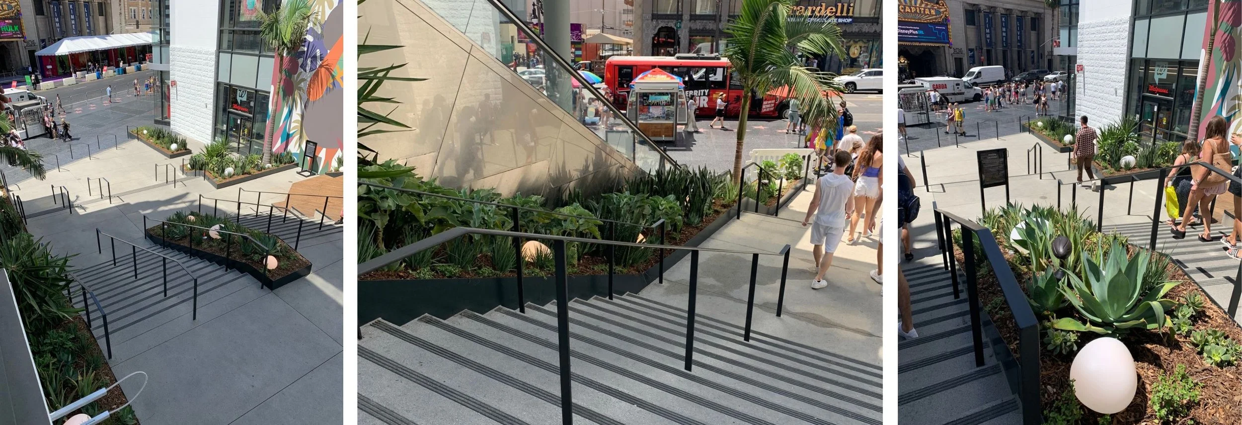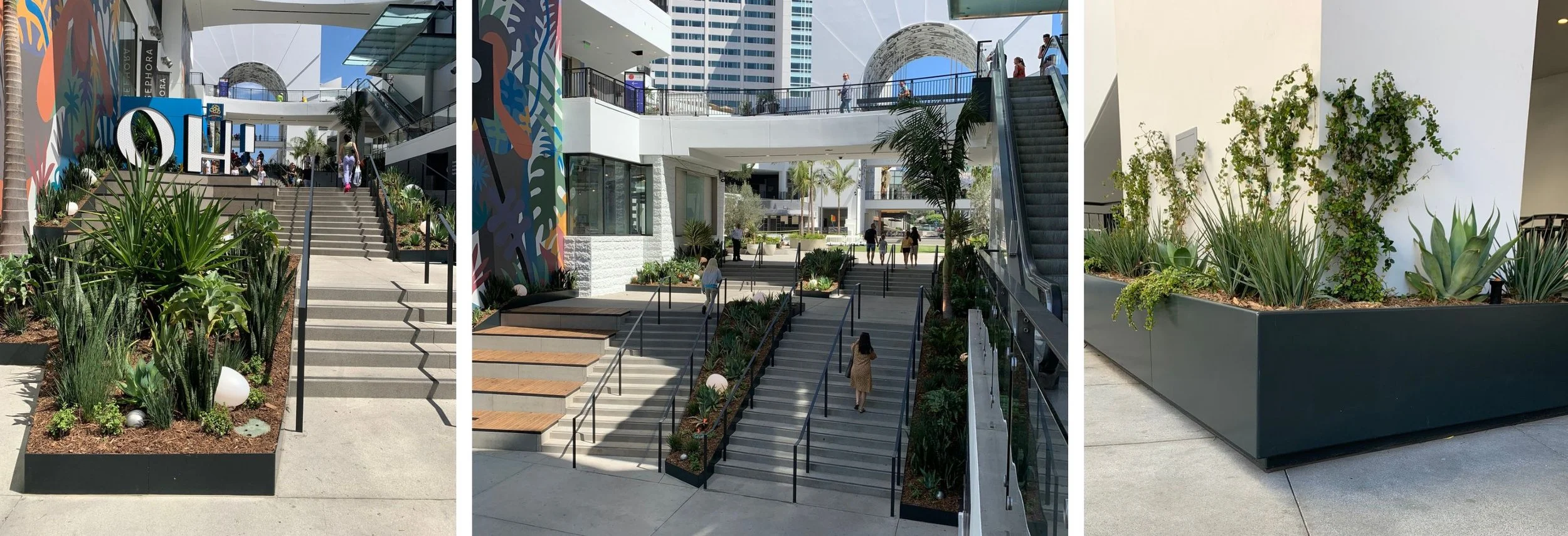At the heart of the newly renovated Ovation Hollywood, Custom Powder-Coated Aluminum Edging Planters transformed the grand staircases leading into this iconic complex. Finished in a sleek Green Black tone, the custom edging seamlessly integrates with the modern architectural style, providing a defined look.
