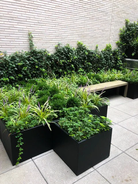 At 613 Baltic, custom Modern Elite Aluminum Planters were strategically added to the multi-level terrace and rooftop, seamlessly integrating trees, shrubs, and perennials into the design. Powder-coated in a Matte Black finish, these planters brought a sleek, modern aesthetic to the terraces, complete with features like built-in lighting.