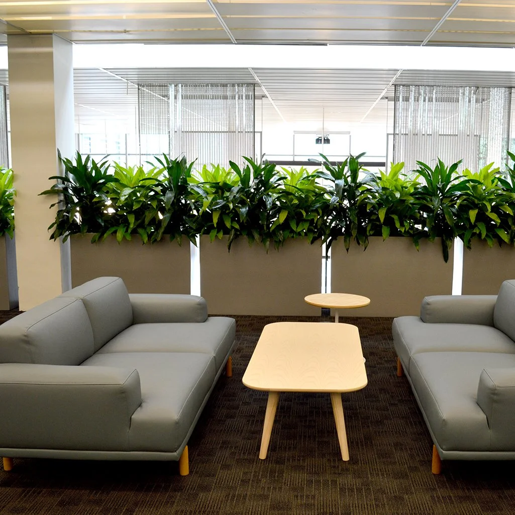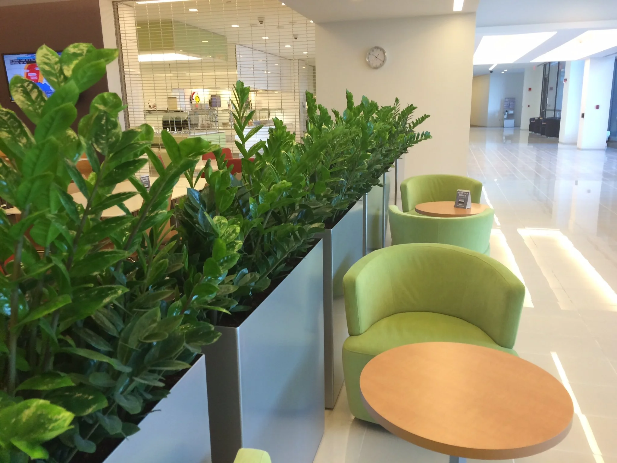 At the National Cancer Institute, Modern Elite Aluminum Planters with a Metallic Silver powder-coated finish enhanced privacy and created a serene waiting area. Filled with sustainable ZZ plants, these planters form a sleek, natural green wall, offering guests a tranquil environment amidst the bustling hallways.