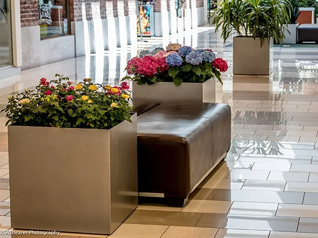 Powder-Coated Aluminum Planters bring a sleek, contemporary look to Boston’s dynamic indoor spaces. Their durable finish resists wear and ensures long-lasting performance, making them ideal for high-traffic environments.